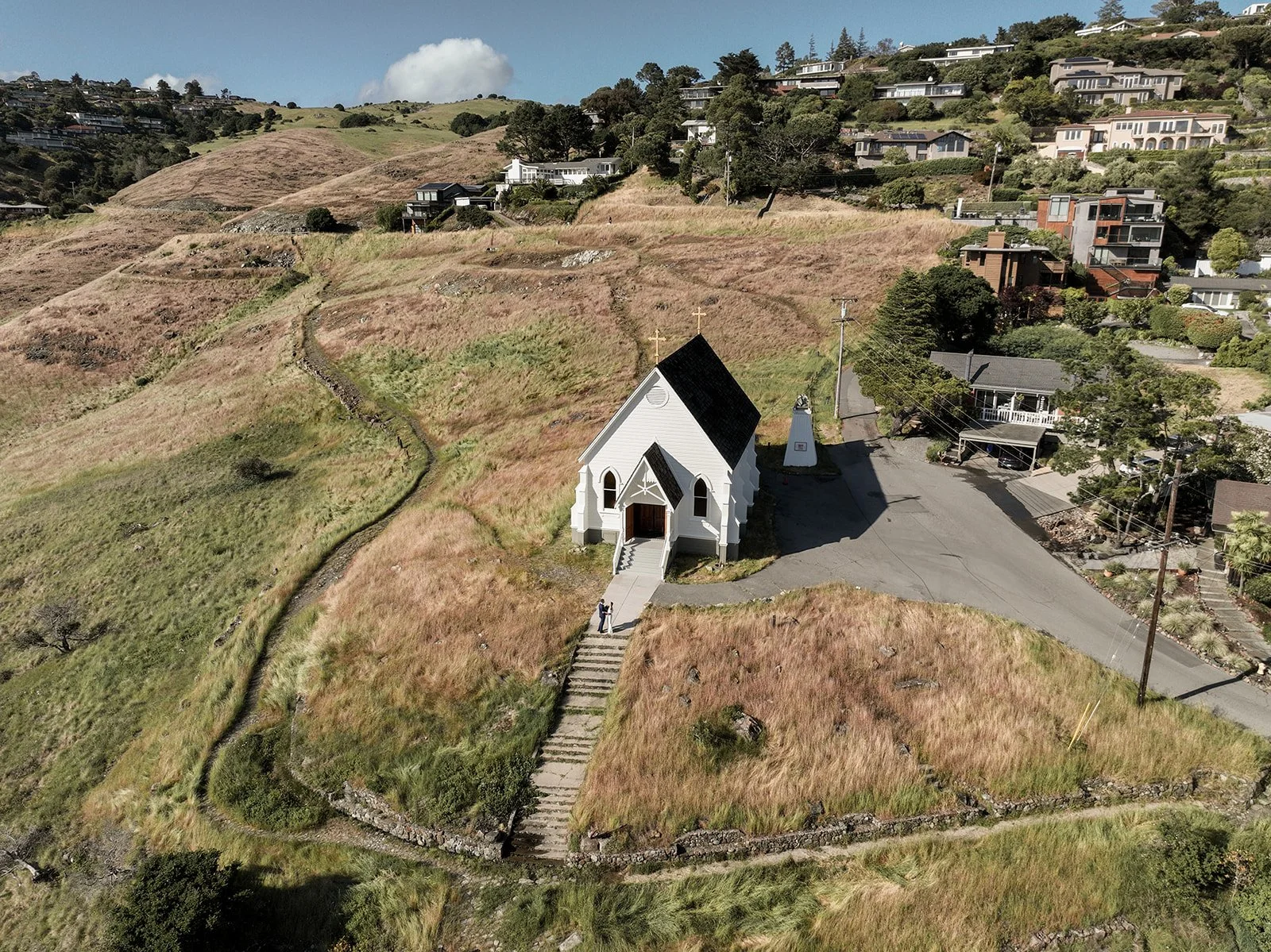 One thing to keep in mind about Old St. Hilary’s is that parking is extremely limited at the chapel itself. There’s only room for a handful of cars up top, and the narrow, winding road can get tight—especially if you’re trying to coordinate a group of guests arriving at once.