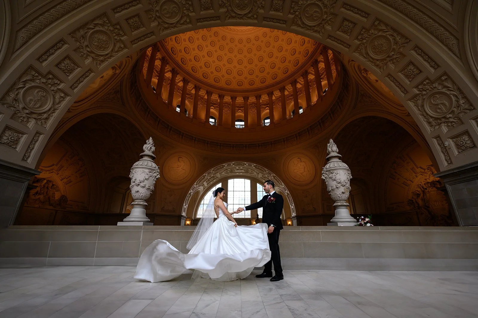 One of the things I love most about photographing weddings at San Francisco City Hall is how much your outfit can completely change the feel of your photos. The architecture is already so stunning and timeless, but what you wear truly sets the tone for your entire gallery.